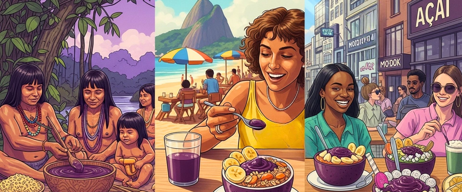 O açaí (Euterpe oleracea) é consumido há séculos por povos indígenas e ribeirinhos da Amazônia como alimento básico. Frequentemente consumido como suco espesso ou pirão salgado com farinha e peixe, era parte central da refeição diária: “sem açaí, a gente ainda fica com fome” era um mantra comum entre os ribeirinhos da região.